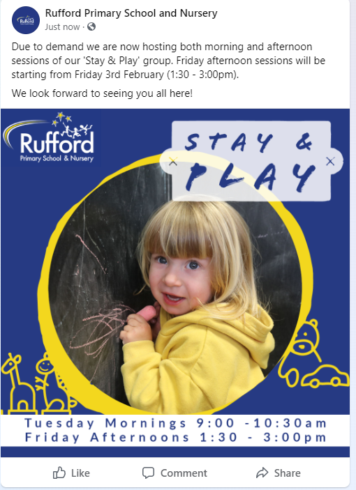 Come to our Stay and Playetilley29Feb 4, 20231 min readWe are delighted that our Stay and Play is now open twice a week. Please, come and join us on Tuesday Mornings and Friday afternoons.